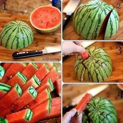 2. 切瓜方法:小美美切瓜时,总是先从瓜蒂开始,这样切出来的瓜更加美观。她还会根据瓜的形状和大小,选择合适的模具,让瓜的形状更加独特。